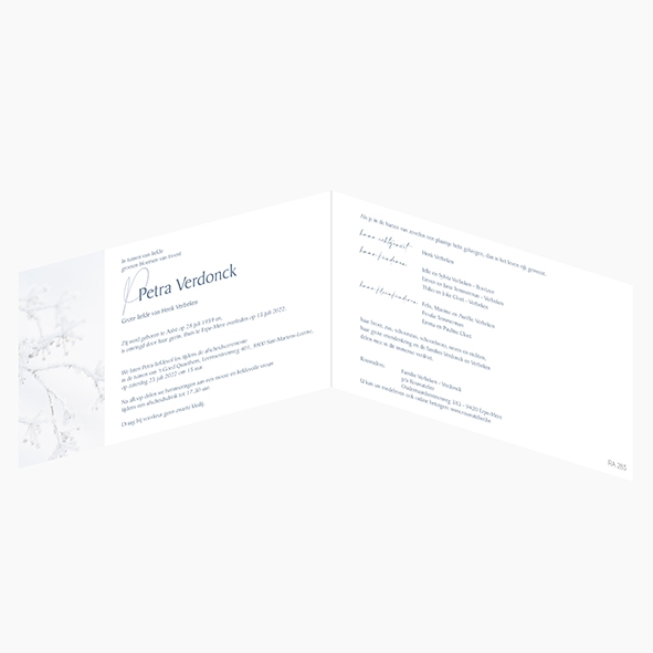 Voorgedrukte rouwbrief met besneeuwd takje